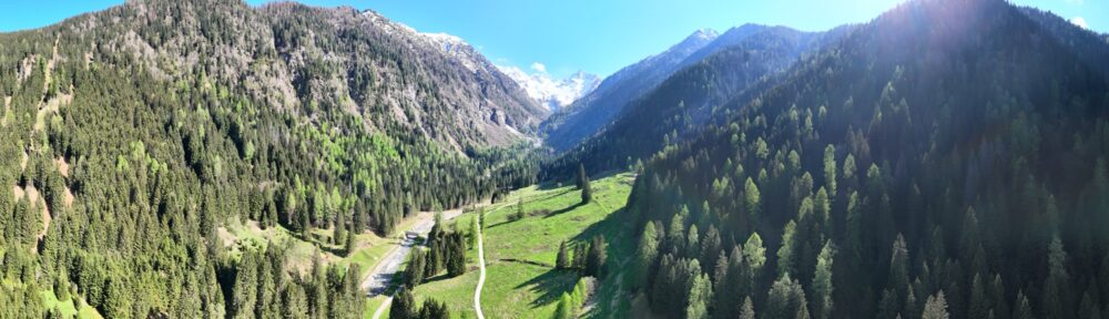 Nestled among dense forests and rolling green hills, Val Piana is one of the lesser-known treasures of Ossana, located in the province of Trento, Northern Italy. Captured on a clear sunny day, this image showcases the unspoiled beauty of the Italian Alps—lush meadows, winding paths, and a sense of calm that invites reflection.